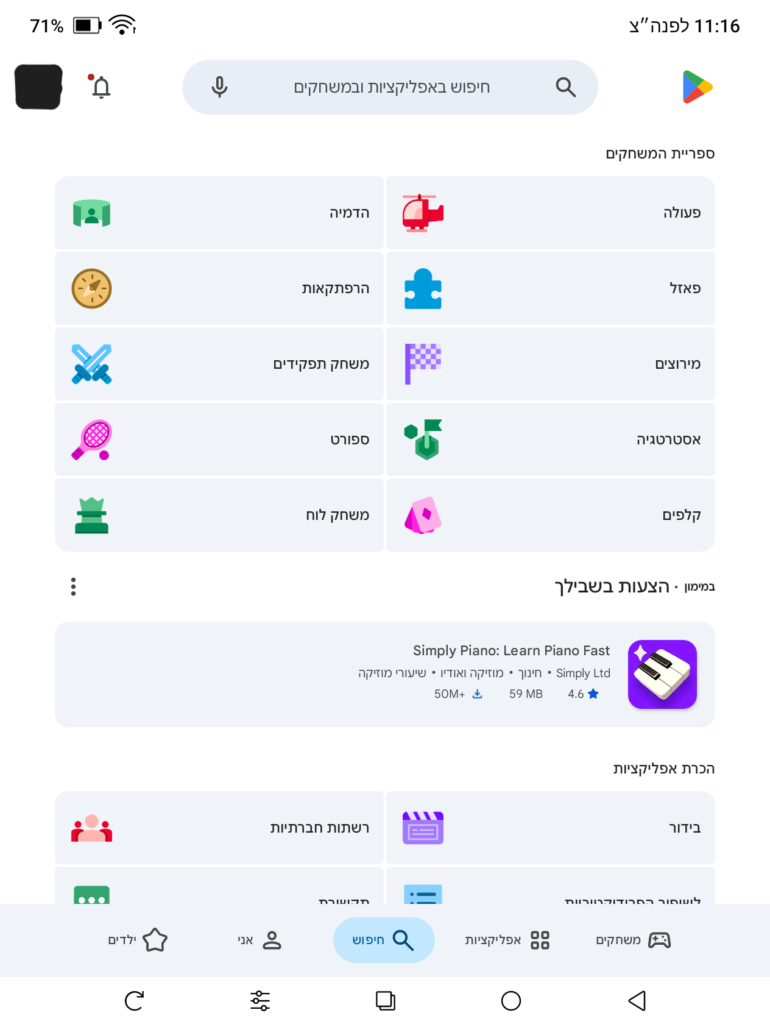 כדי לפתוח את חנות הPlay: