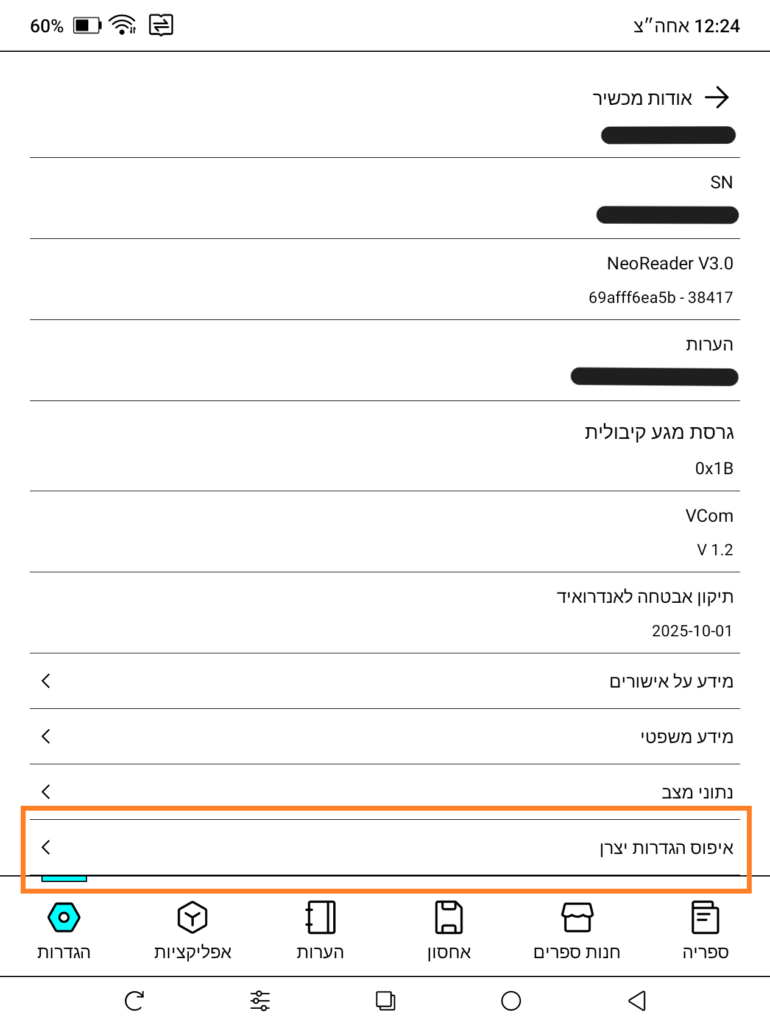 הגדרות > לוחצים על הריבוע בחלק העליון של הדף עם שם הדגם > איפוס הגדרות יצרן > מחיקת כל הנתונים
